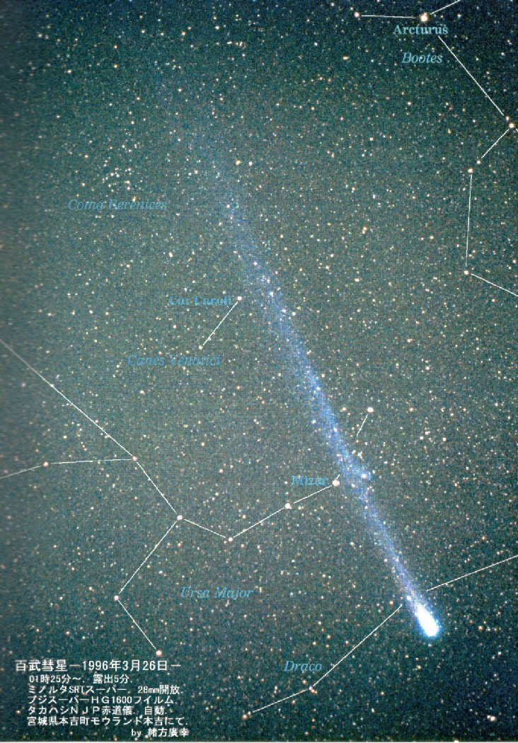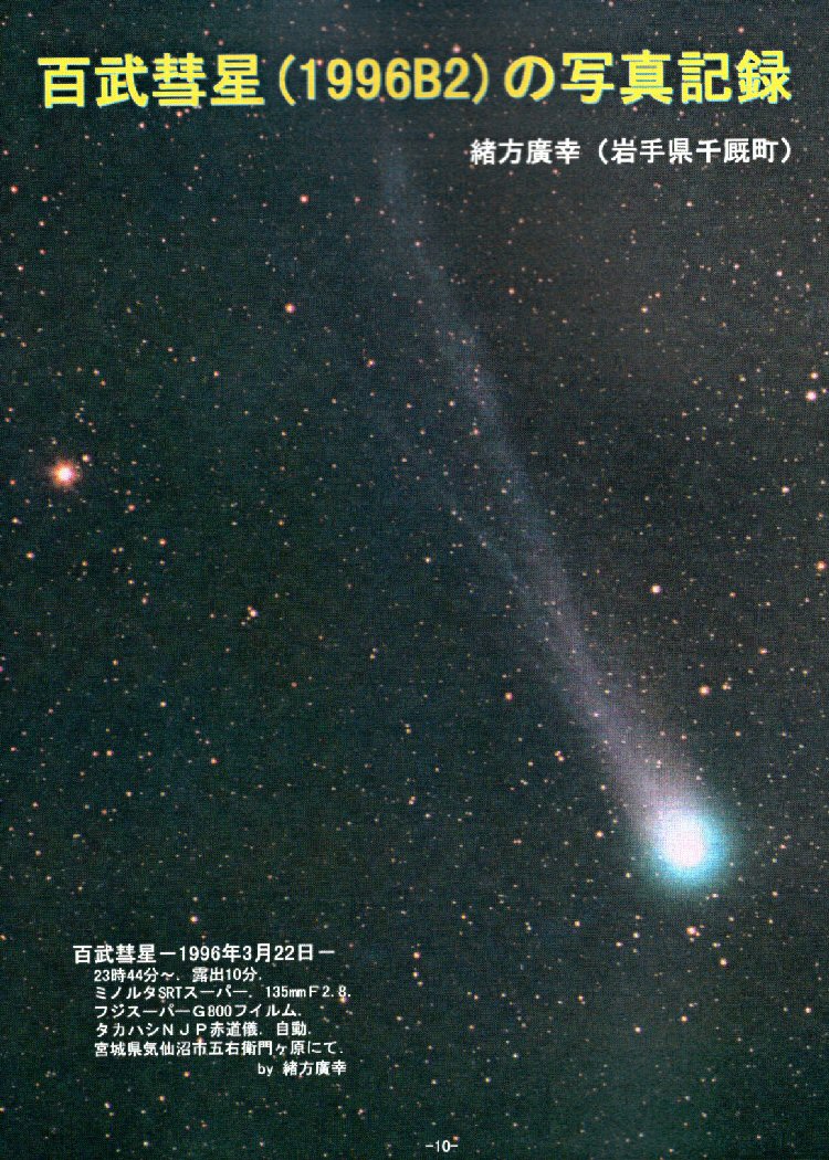 HOME←Web天文台←彗星画像のページ← C/1996 B2 百武彗星 ← 「百武彗星の写真記録」 (緒方廣幸 氏)