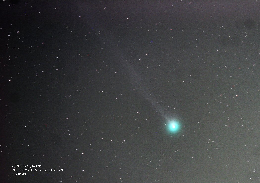 Web天文台/2006年10月27日の 「C/2006 M4 (SWAN) 」 スワン彗星 の画像 撮影/鈴木徳実 (山形県酒田市) <ブラウザの 「戻る」 ボタンで 「一覧のページ」 に戻ってください> |