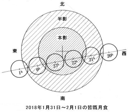 Web天文台/2018年1月31日〜2月1日の皆既月食 の画像 ![]() 2018年1月31日〜2月1日の皆既月食 の画像・・・・・撮影 / 小山田博之 氏 ![]() ![]() 2018年1月31日〜2月1日の皆既月食 の画像・・・・・撮影 / 小山田博之 氏 ![]() 日本で見られる地球の影に対する月の移動のようす。 半影食の始めは 19時44.8分 部分食の始めは 20時48.1分 皆既食の始めは 21時51.4分 食の最大は22時 29.8分、 食分は 1.321 皆既食の終りは 23時8.3分 部分食の終りは2月1日 0時11.5分 半影食の終りは 1時10.0分 |