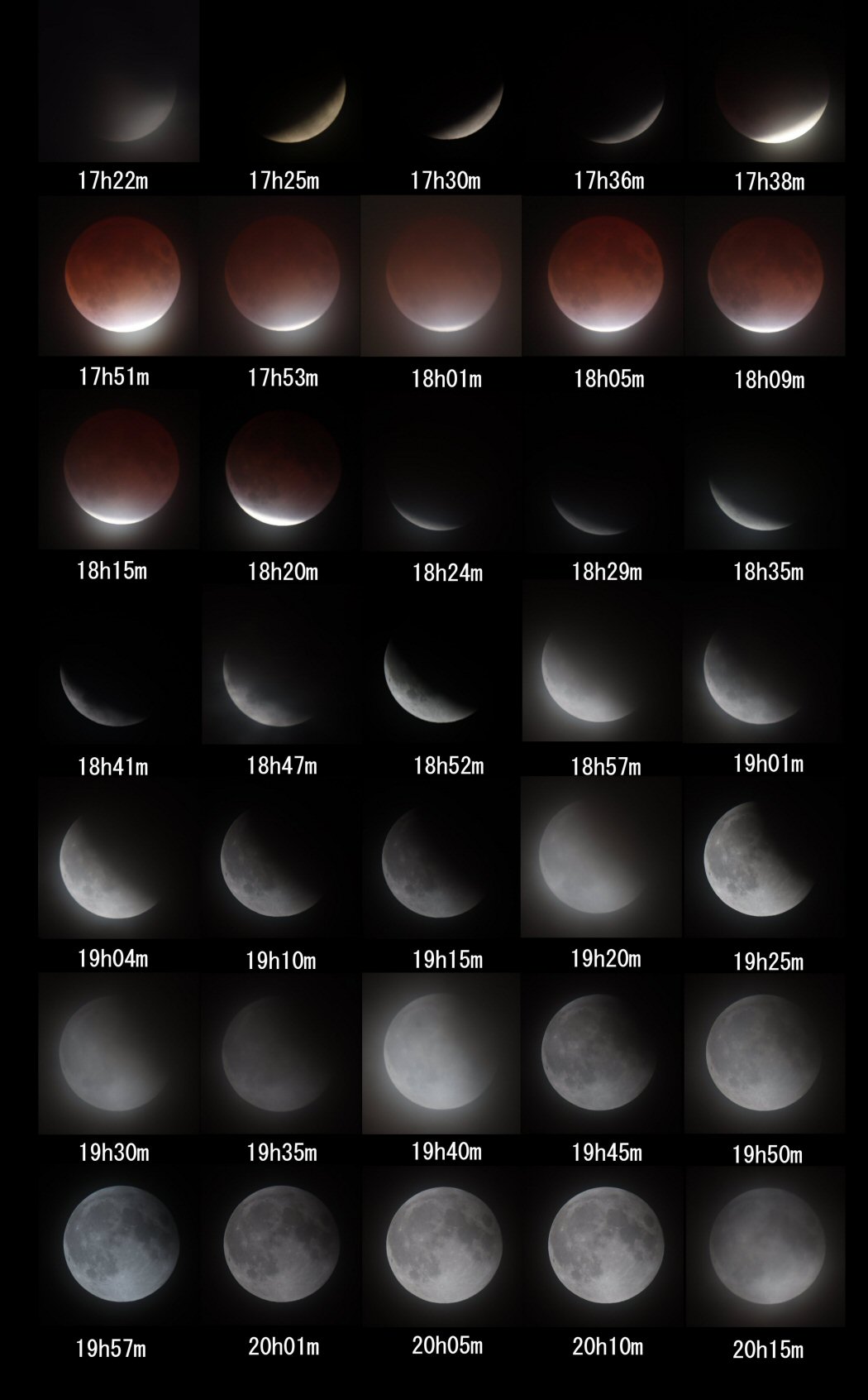 Web天文台/2021年11月19日の部分月食 の画像 ![]() 2021年11月19日の部分月食 の画像・・・・・撮影 / 小山田博之 氏 ![]() 2021年11月19日の部分月食 の画像・・・・・撮影 / 小山田博之 氏 ![]() 2021年11月19日の部分月食 の画像・・・・・撮影 / 小山田博之 氏 ![]() 日本で見られる地球の影に対する月の移動のようす。 半影食の始めは 15時0.4分 部分食の始めは 16時18.4分 食の最大は 18時2.9分、 食分は 10.978 部分食の終りは 17時47.4分 半影食の終りは 21時5.5分 |