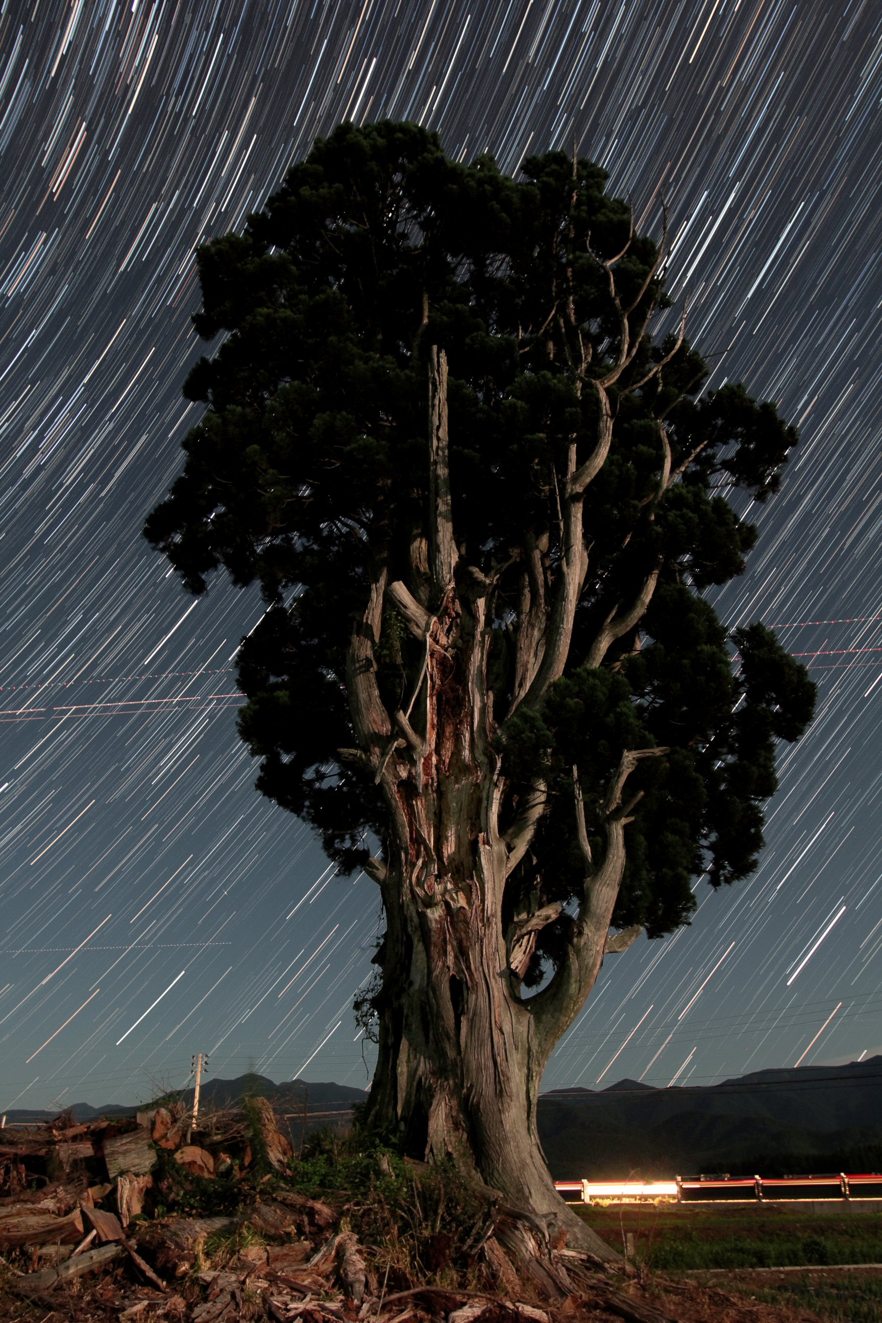 HOME←≪星景写真≫ 傾城壇の一本杉 (山形県新庄市)
