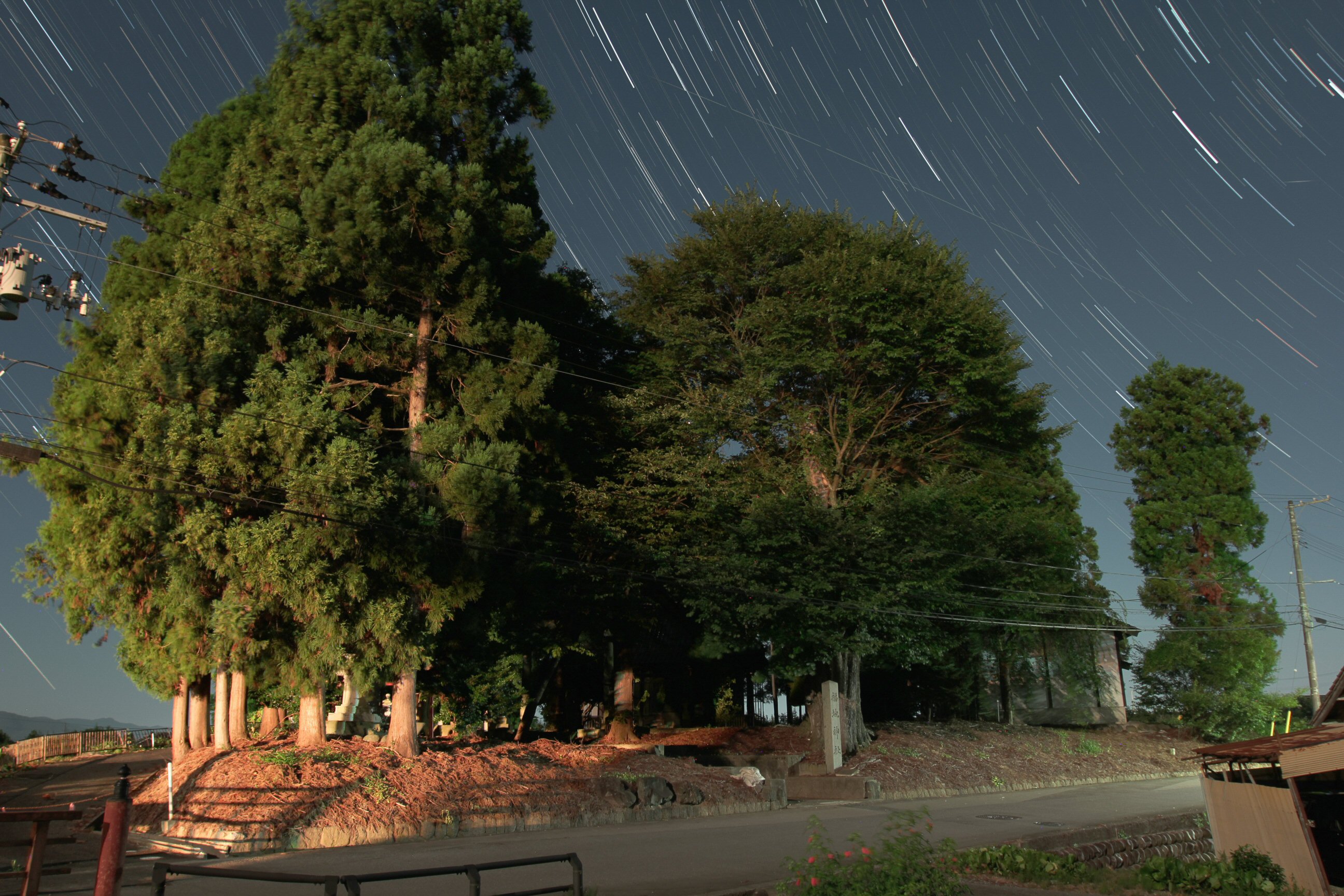 画像を横切るように何本もの電線が走っておりますが、私の星景写真では避けることができないものはあるがままに撮影することにしています。