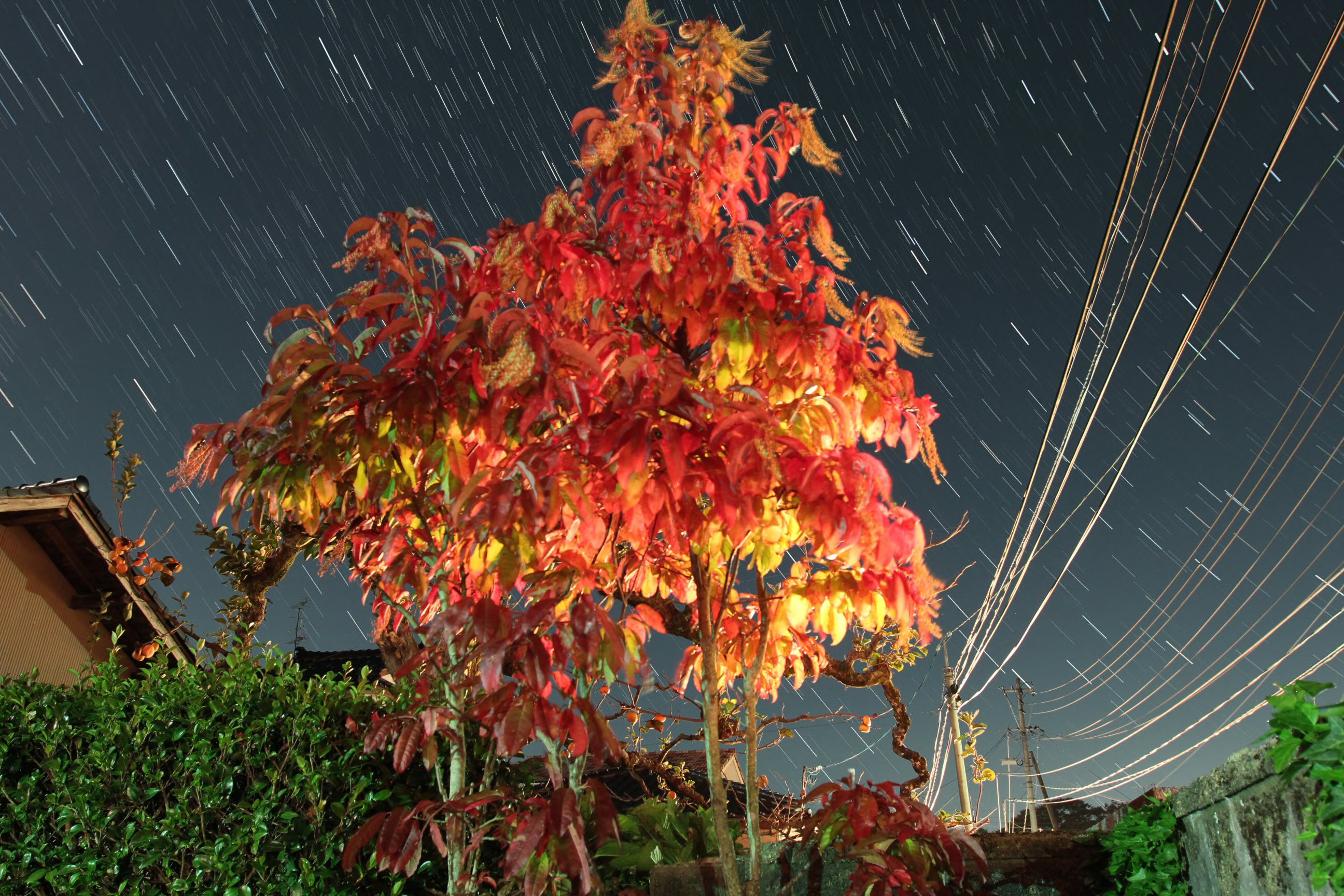 HOME←≪星景写真≫ 色づくスズランのなる木 (山形県酒田市)