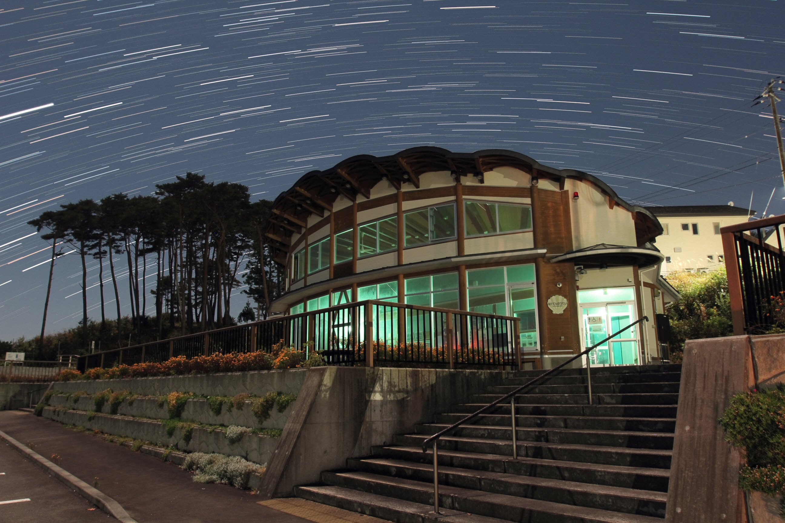 ≪星景写真≫ ほたてんぼうだい (岩手県野田村) 「野田村東日本大震災大津波記念碑」 と同じ場所にある 「ほたてんぼうだい」 です。 国道45号線沿いの高台にある特産品のホタテをモチーフにした展望休憩施設です。 上から見ると屋根が ホタテ のようになっています。 野田村の海は外海で潮の流れが速く、水質がきれいでプランクトンが豊富な海です。 その海で、籠の中で自由に動ける環境で育てる 「荒海ホタテ」 ず特産品です。 ※ 画像をクリック、再クリックするとよ り大きな画像になります。ブラウザの戻るボタンで戻れます。 (2024/01/06) ≪星景写真≫ ほたてんぼうだい (岩手県野田村)・・・撮影/鈴木徳実 (山形県酒田市) |