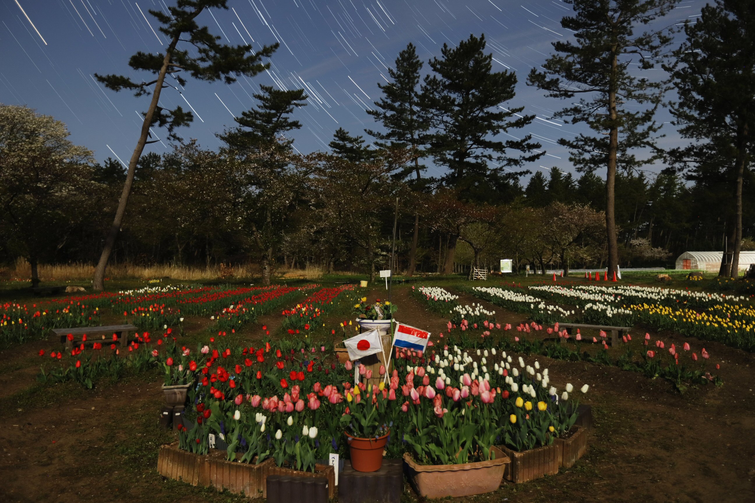 ≪星景写真≫ 爛漫 =2= いこいの村公園のチューリップ (山形県鶴岡市)