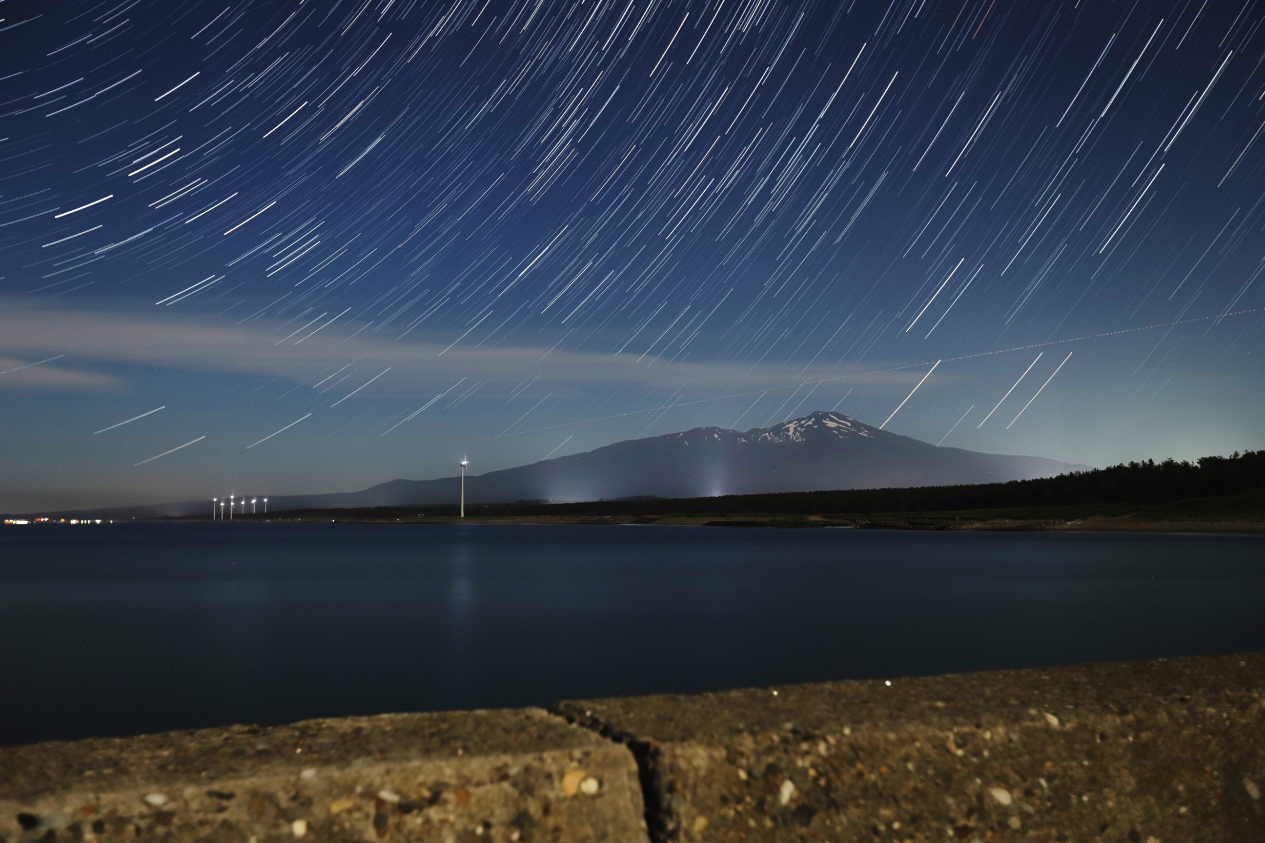 2024年6月19日 21時36分〜、10秒露出 101 コマ連写を比較明合成、Canon EF16-35mm F2.8L II USM →