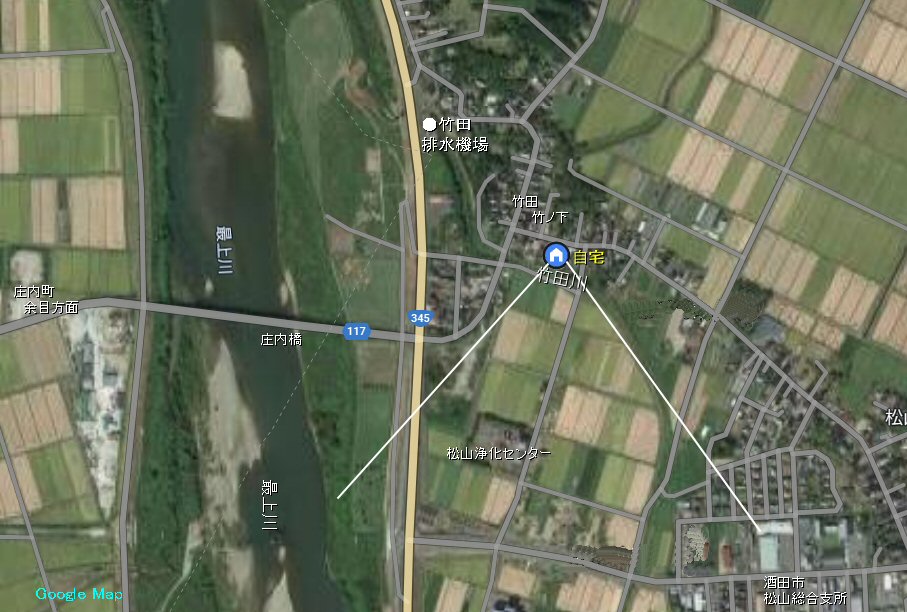 自宅の南側はちょっとした崖になっていてその下を竹田川が流れています。