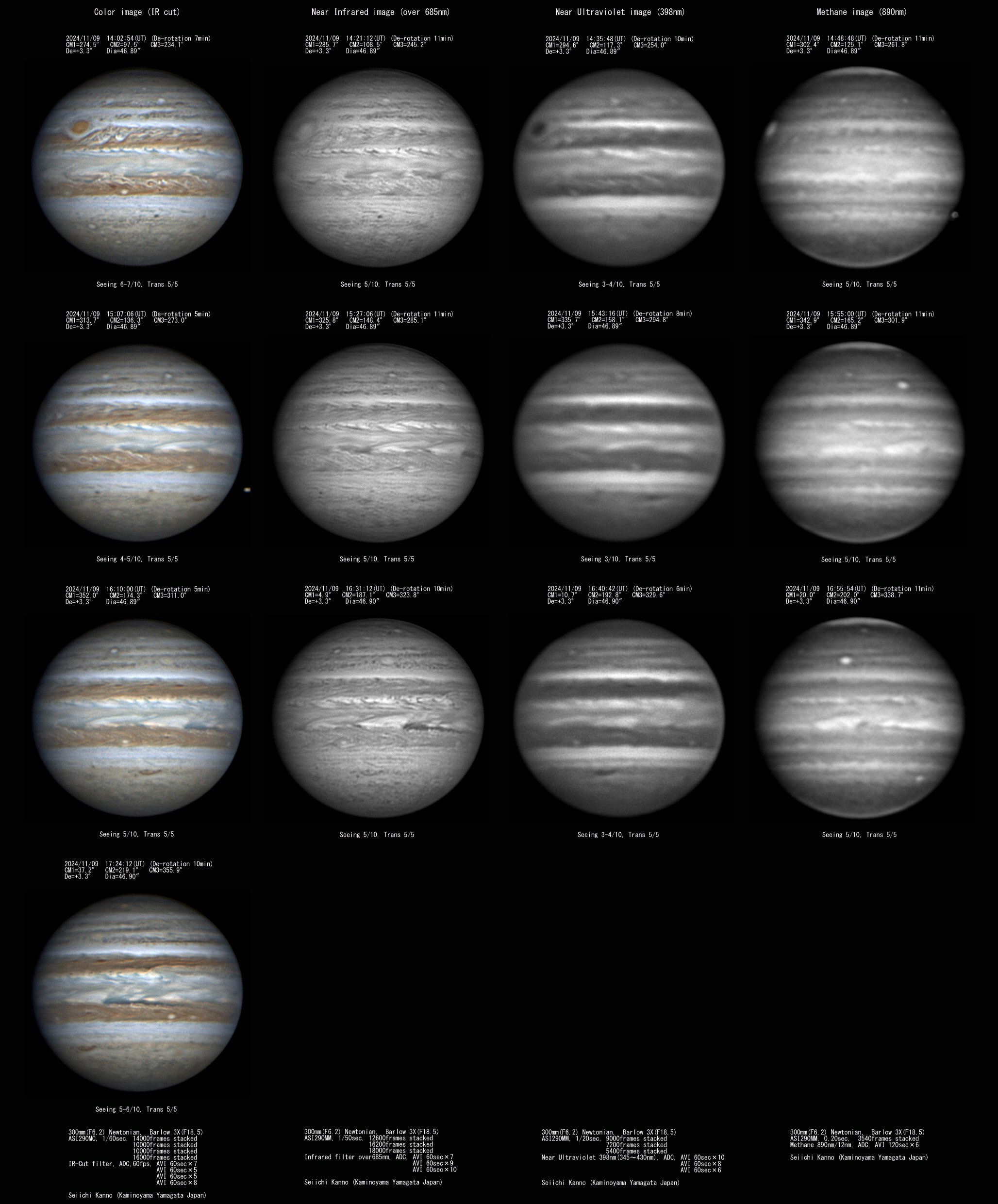 ・10月12日の報告では、GRSの後方のSEBの「Post-GRS disturbance」領域の活動があまり活発でないとコメントしたが、今回の画像(1セット目のカラー画像)から現在は非常に活発な状態にあることが確認出来た。