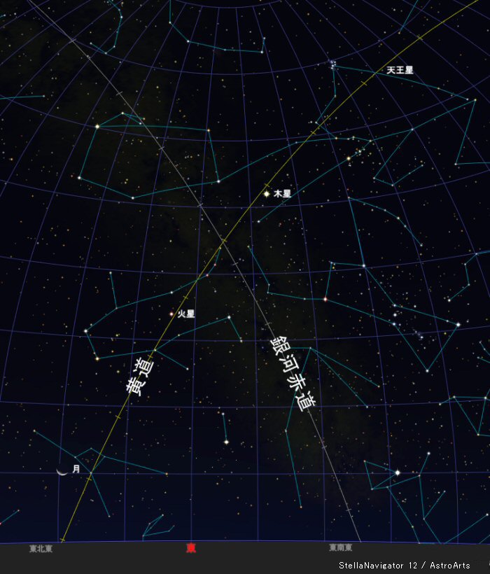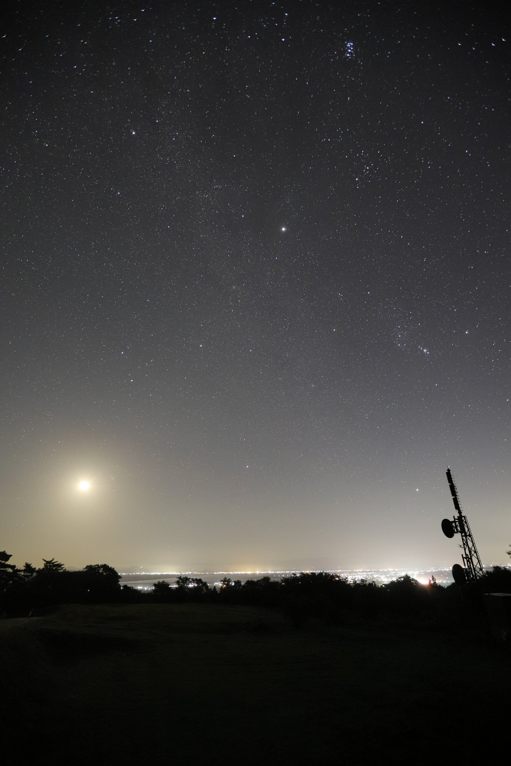 街明かりと月明かりの中で、淡い 「冬の天の川」 と淡い 「黄道光」 が巨大な 「エックス形」 を描いていました。