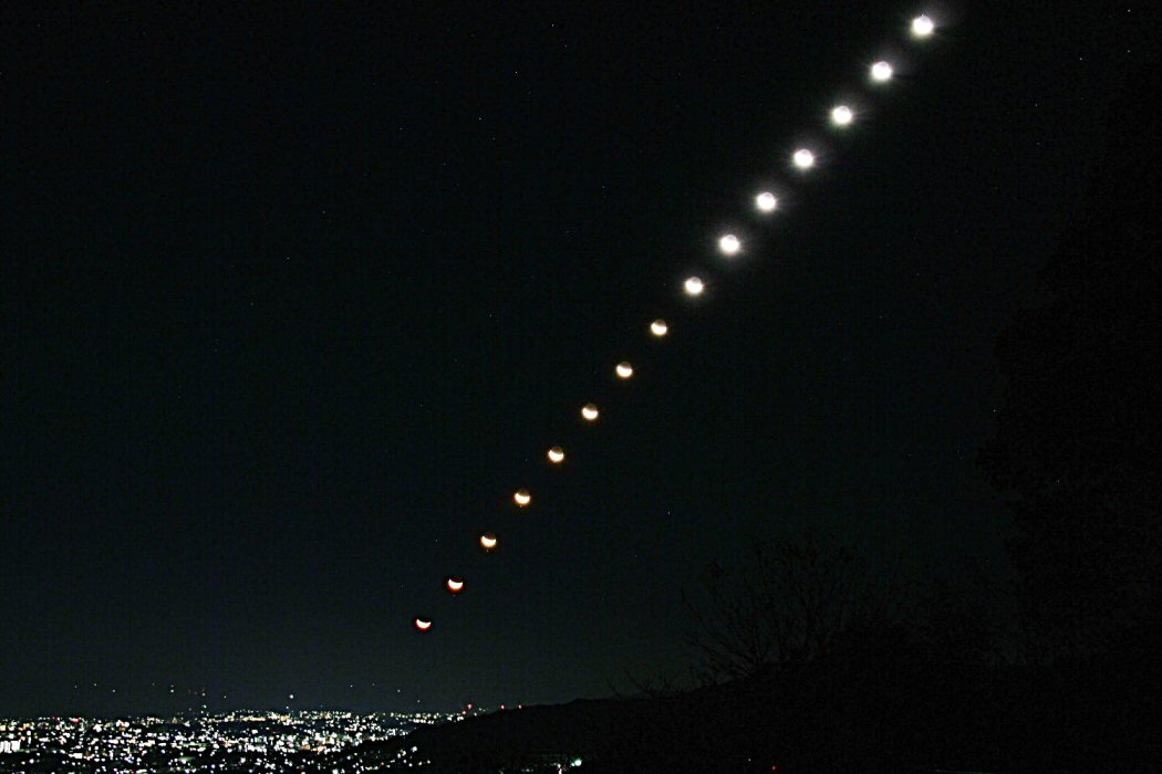 2024年12月25日 2時10分から 9分ごと、露出各1/5秒を比較明コンポジット、