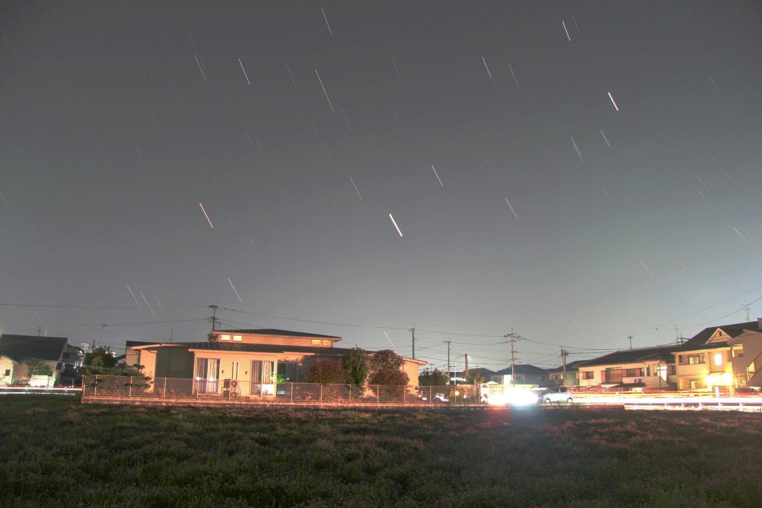 2025年4月25日 20時56分〜、15秒露出37コマ連写を比較明合成、Canon EFS17-85mm → 17mm F4.0、