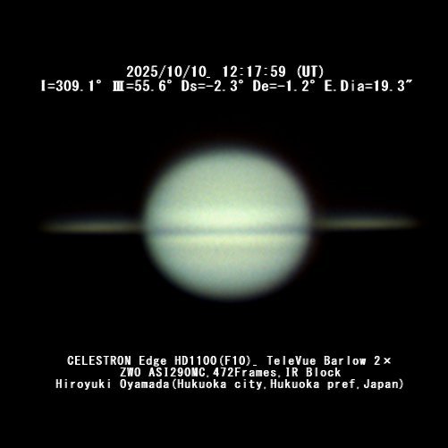 11月下旬以降は再度環の傾きが大きくなつていきます。 (2025/10/12)