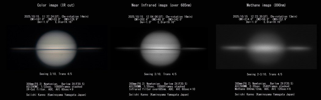 前回(9月16日)の画像と比較すると、土星の模様の様子はシーイングの影響で比較できませんが、環の傾きが小さくなっている事だけは良く判りました。